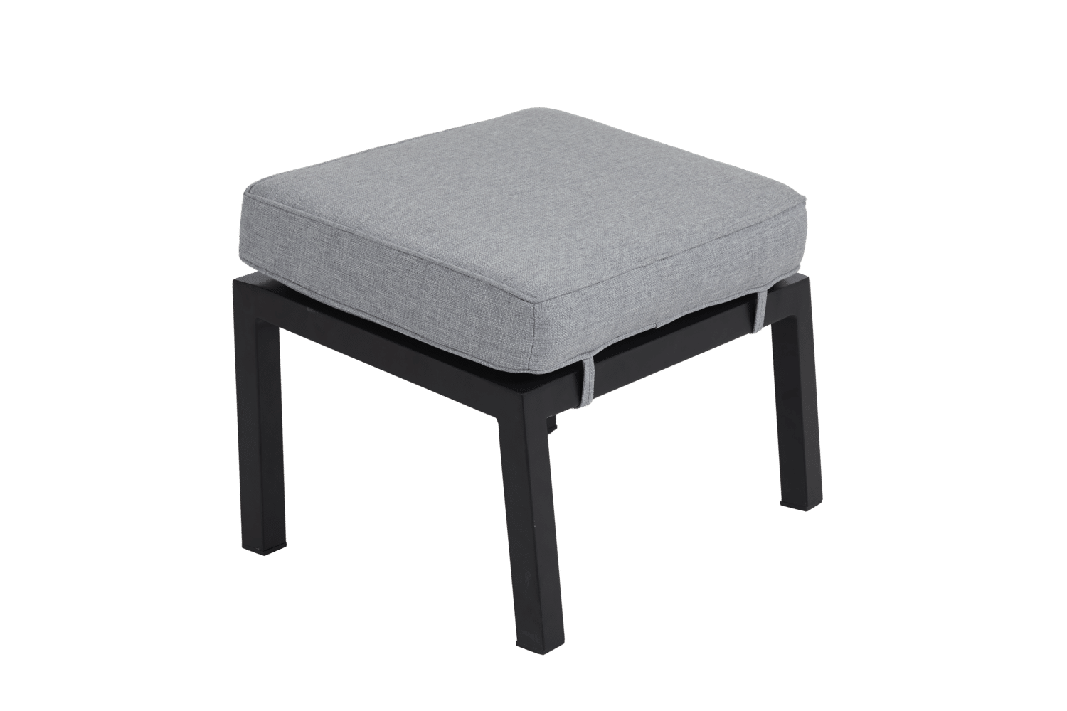 En modern loungeserie med utmärkt sittkomfort. Du kan välja mellan matt vit eller svart aluminium med grå textilene och dynorna som följer med är av hög kvalitet och klädda med olefintyg. Serien består av flera separata delar som ger dig frihet att skapa en trivsam och funktionell uteplats oavsett om den är liten eller stor.