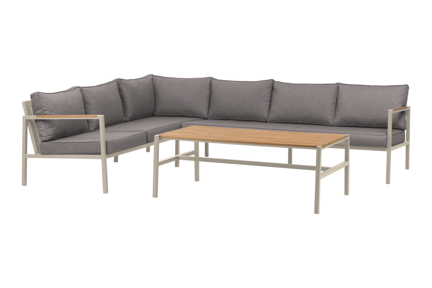 Hörnsoffa, i stor version. Bord ingår. En serie med genomtänkt design och omsorg om detaljer, i en modern och avslappnad stil för hållbar komfort.