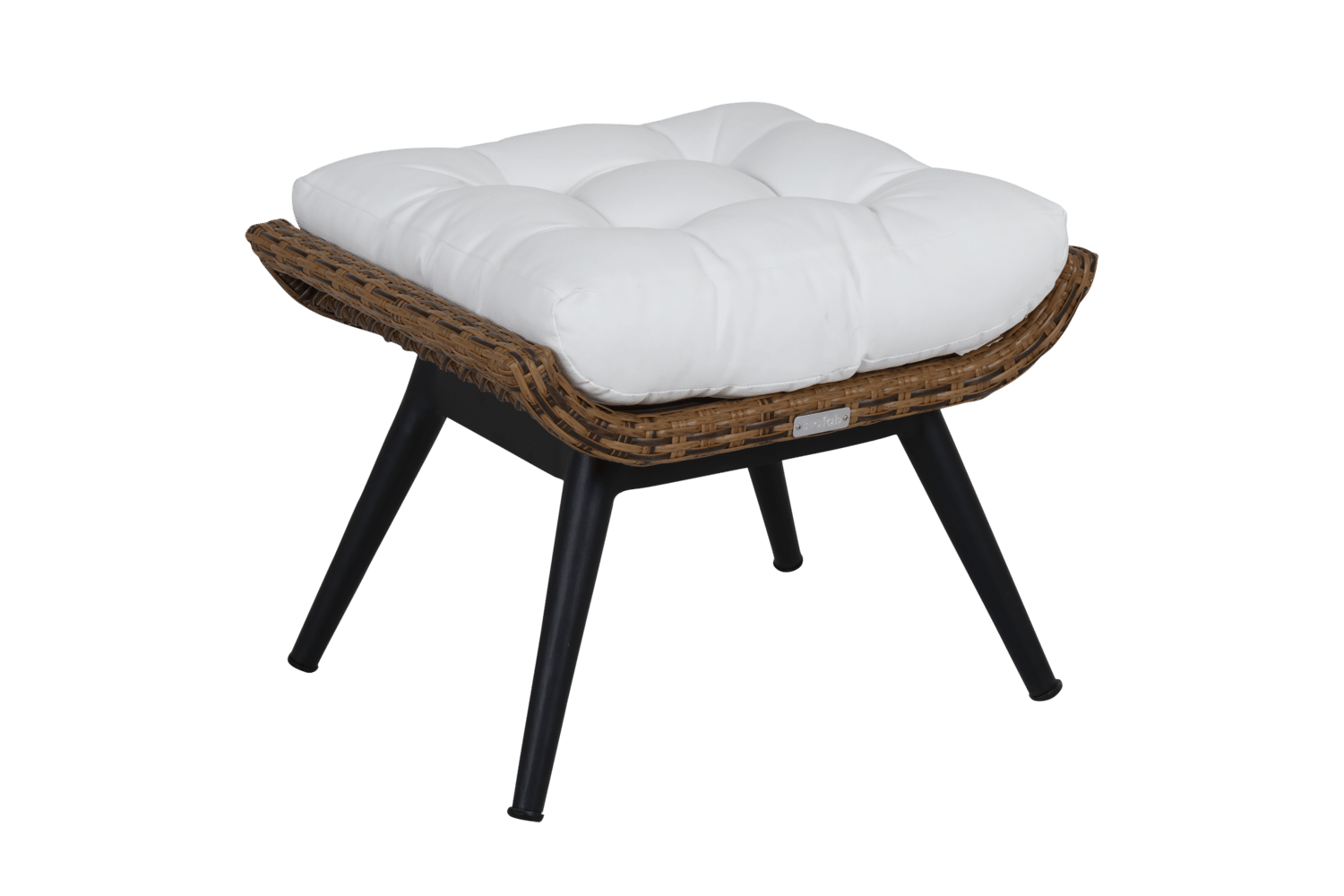 Den naturliga partnern till Covelo loungefåtölj. Samma snygga och stabila konstrottning i naturfärg på svarta ben och med en fin dyna i vitt olefintyg. Bekväm, elegant och med en naturlig känsla.