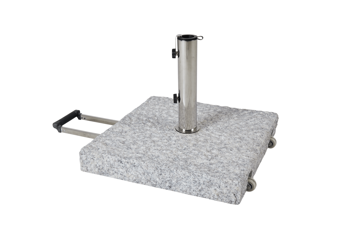 Granitfot med två olika färger/ytor att välja på. Rör i rostfritt stål. Alla storlekar har handtag och två hjul för enkel förflyttning. För stänger 35-54 mm.