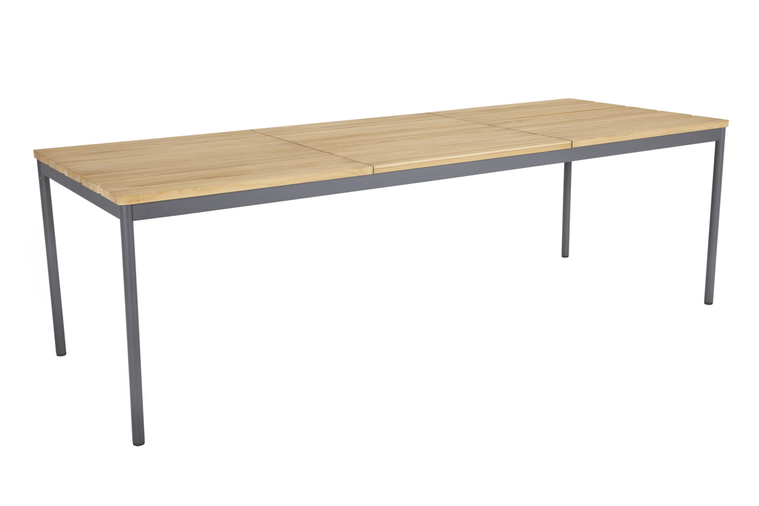 Möjligheterna är många med detta högkvalitativa matbord för uteplatsen. Stativ i pulverlackerad aluminium och bordsskiva i vacker teak.