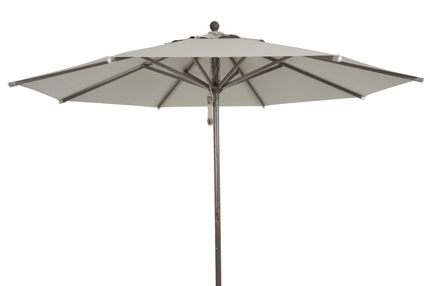 Tänk dig ett klassiskt, stort parasoll i trä av den typen som passar perfekt på en solig terrass i Italien. Då är det Paliano du ser framför dig. Men det är inte bara den vackra designen och den generösa storleken som gör detta parasoll unikt; stången i Paliano är tillverkad i hållbar aluminium klädd i ett naturtroget mönster som på pricken liknar trä – men som inte behöver underhållas.