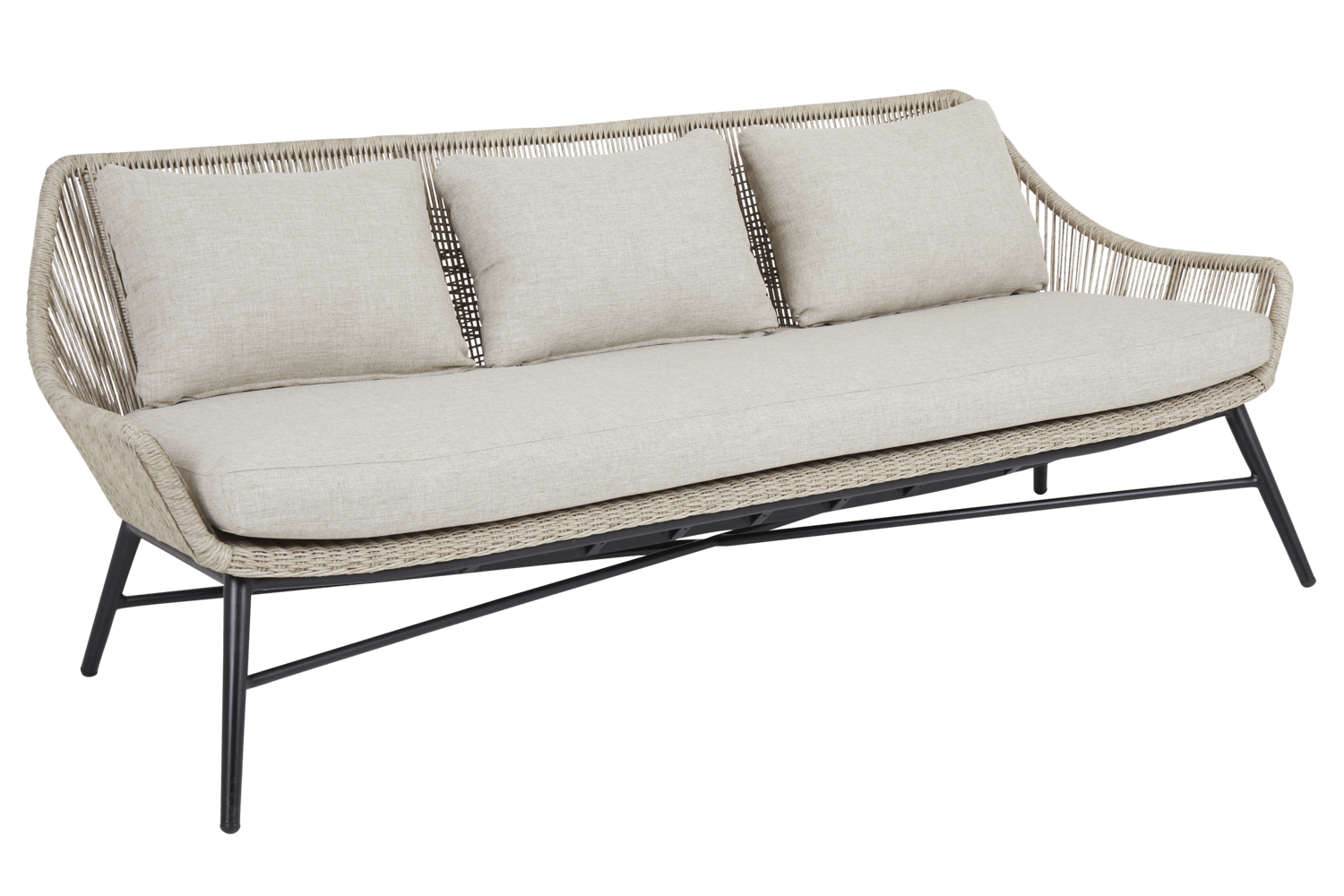 Soffgrupp med moderna, runda former i twistad konstrotting. Kan med fördel kombineras med bord från vår serie Pamir.