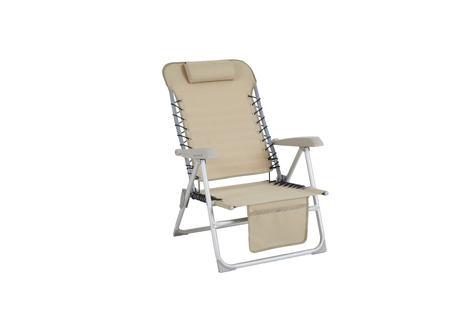 Nätt och stapelbar strandstol med aluminiumstomme och slitstark polyester. Ficka framtill.